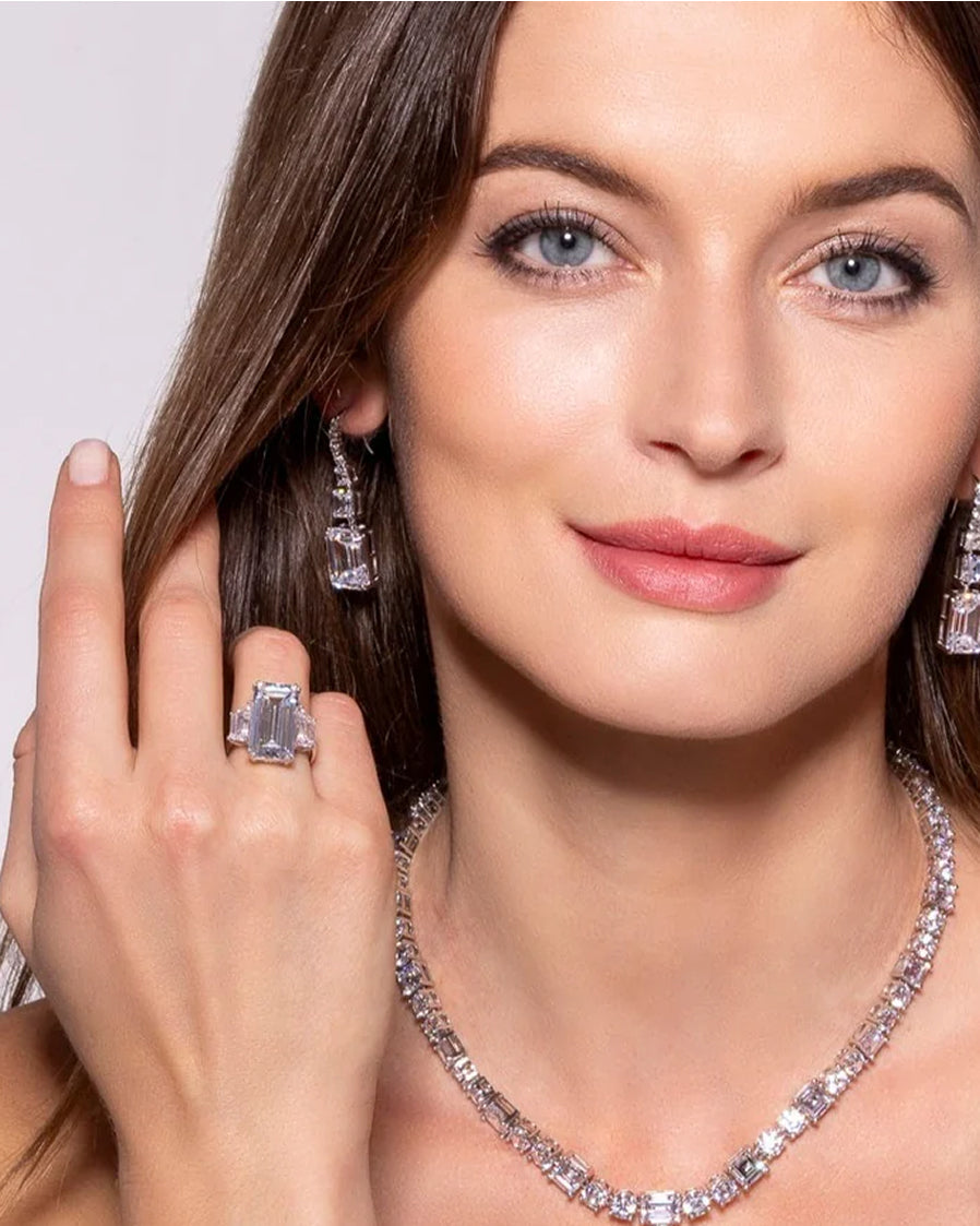 All AZ stones, whether clear or color, are Diamond Coated Crystalline stones. Our pieces are created using a unique lab process that creates stones that rival the look of real diamonds but at a fraction of the price! The DCC process allows us to create the kind of clarity, quality, and intricate detail found only in the best grade of genuine diamonds.