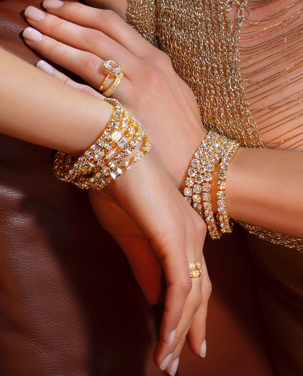 Sold outWhite Diamond CrystallineWhite Diamond CrystallineYellow GoldYellow Gold4 Carat Straight Line Tennis Bracelet in Yellow Gold