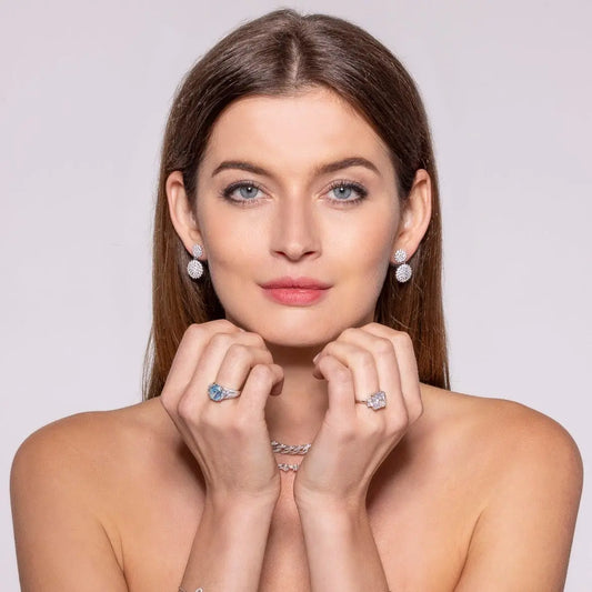 All AZ stones, whether clear or color, are Diamond Coated Crystalline stones. Our pieces are created using a unique lab process that creates stones that rival the look of real diamonds but at a fraction of the price! The DCC process allows us to create the kind of clarity, quality, and intricate detail found only in the best grade of genuine diamonds.