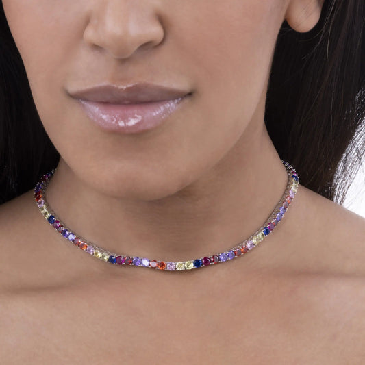 Rainbow Sapphire Cuban Necklace in Platinum