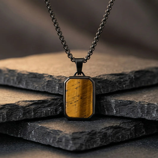 Golden Tiger Stone Dog Tag Necklace