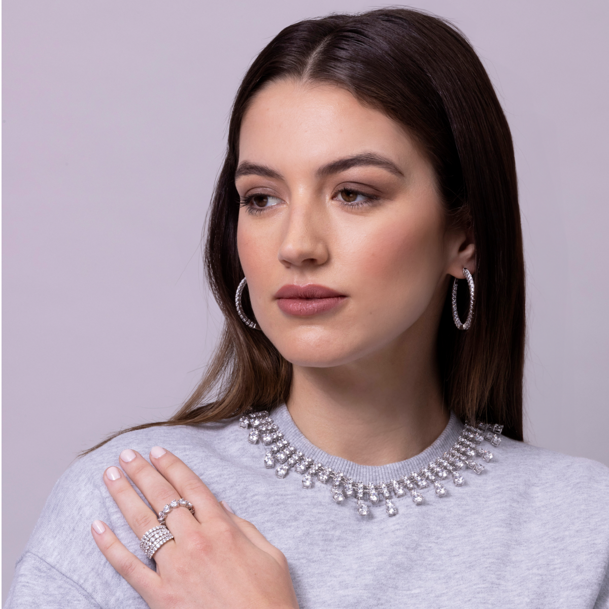 All AZ stones, whether clear or color, are Diamond Coated Crystalline stones. Our pieces are created using a unique lab process that creates stones that rival the look of real diamonds but at a fraction of the price! The DCC process allows us to create the kind of clarity, quality, and intricate detail found only in the best grade of genuine diamonds.