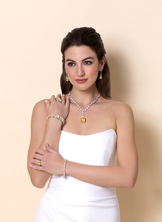 All AZ stones, whether clear or color, are Diamond Coated Crystalline stones. Our pieces are created using a unique lab process that creates stones that rival the look of real diamonds but at a fraction of the price! The DCC process allows us to create the kind of clarity, quality, and intricate detail found only in the best grade of genuine diamonds.