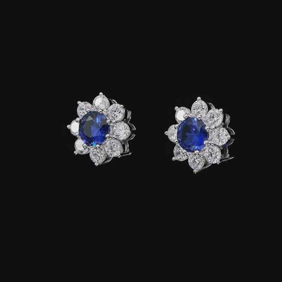 Discover the timeless elegance of the Astoria Earrings, a refined classic designed to shine with effortless sophistication. These stunning stud earrings feature deep blue sapphire centers, beautifully framed by a radiant halo of sparkling diamond crystallines. Crafted to balance everyday wearability with elevated glamour, the Astoria Earrings are a must-have staple for any jewelry collection.