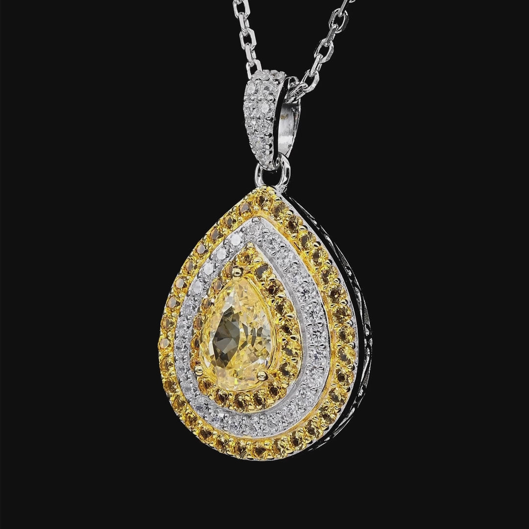 Sparkle bright with this eye-catching teardrop necklace, showcasing a vibrant canary yellow diamond crystalline center and shimmering accents. Finished in 18K yellow gold over sterling silver, it's the perfect statement piece to elevate any look.