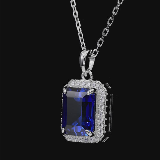 Elegant and timeless, the Biltmore Necklace in Sapphire features a deep emerald-cut sapphire crystalline at its center, framed by a luminous halo of white diamond crystalline gems. Inspired by classic heirloom jewelry, this refined pendant delivers rich color, symmetry, and sophistication—perfect for both special occasions and elevated everyday wear.