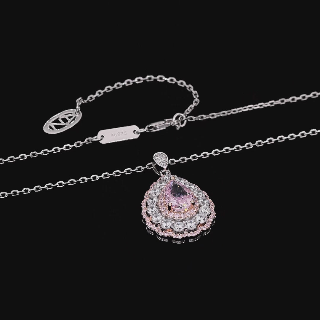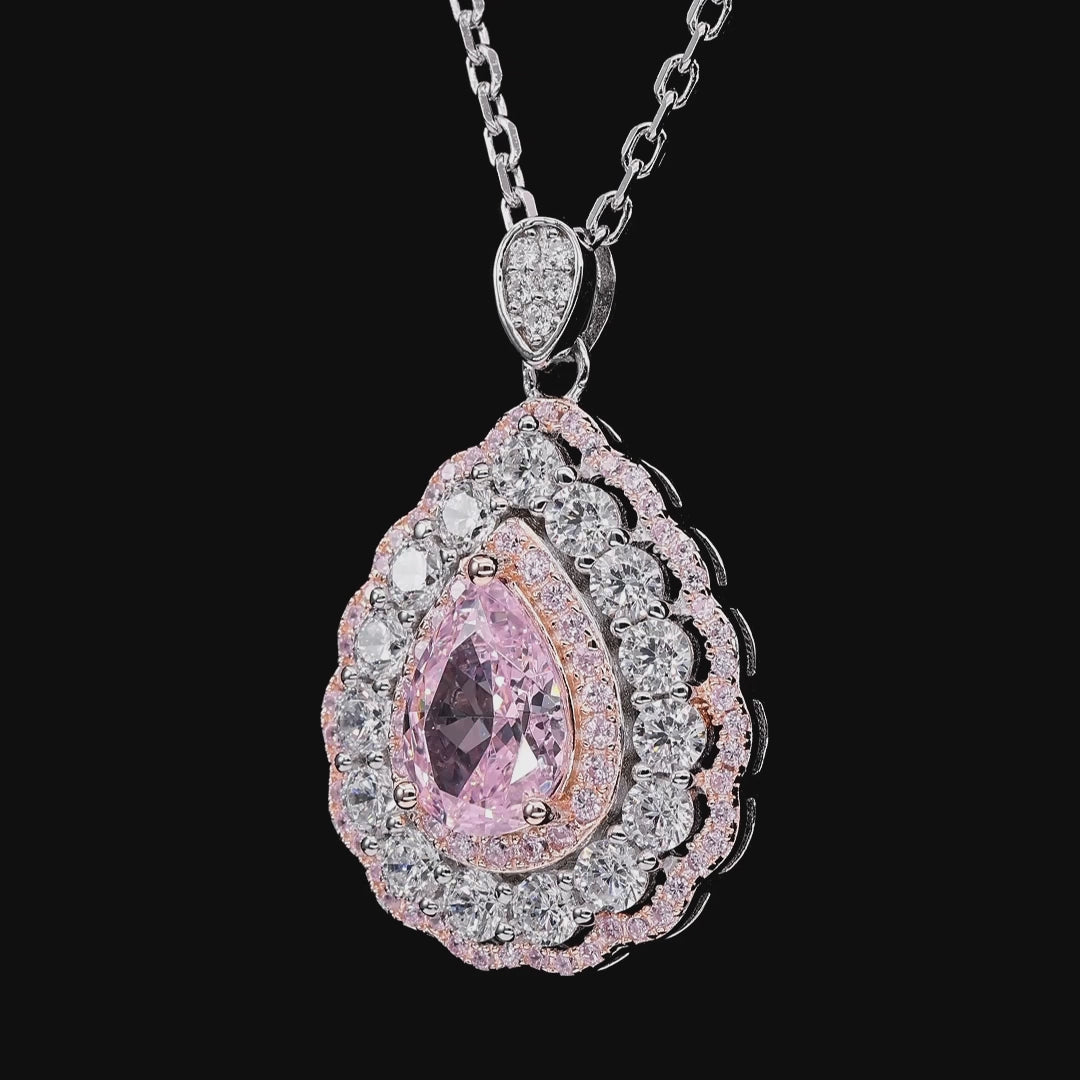 Sparkle bright in this teardrop pendant, showcasing a pink pear shaped center framed by brilliant diamond crystalline accents and soft pave details - designed to dazzle with every turn.