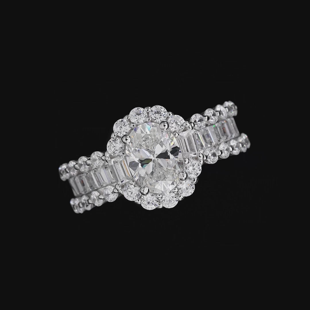 - Main Stone: Oval Shaped Diamond Crystalline