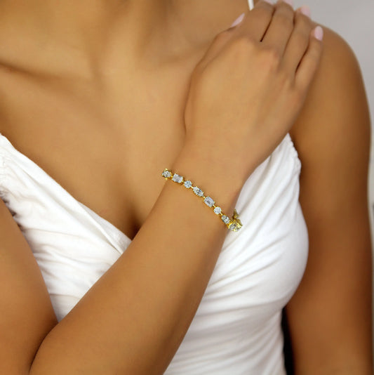 Sold outWhite Diamond CrystallineWhite Diamond CrystallineYellow GoldYellow Gold4 Carat Straight Line Tennis Bracelet in Yellow Gold