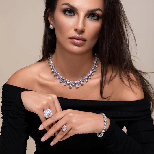 All AZ stones, whether clear or color, are Diamond Coated Crystalline stones. Our pieces are created using a unique lab process that creates stones that rival the look of real diamonds but at a fraction of the price! The DCC process allows us to create the kind of clarity, quality, and intricate detail found only in the best grade of genuine diamonds.