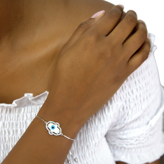Sold outWhite Diamond CrystallineWhite Diamond CrystallineYellow GoldYellow GoldHamsa Disc Bracelet