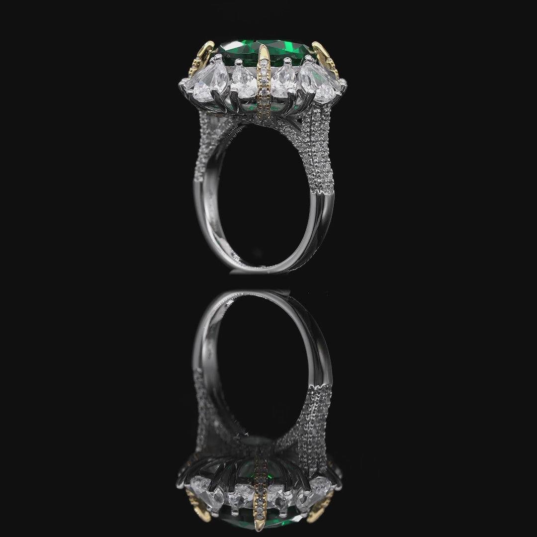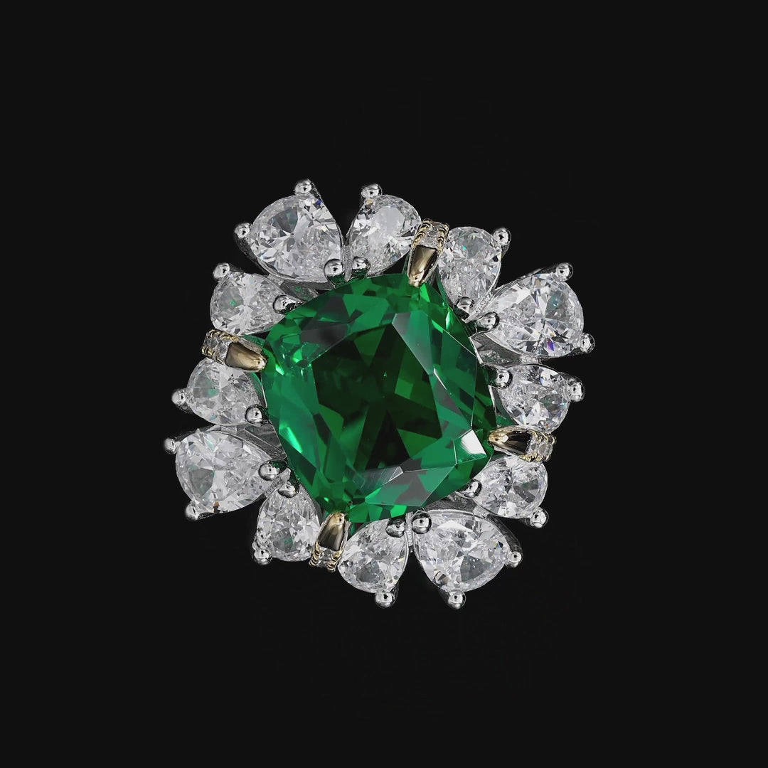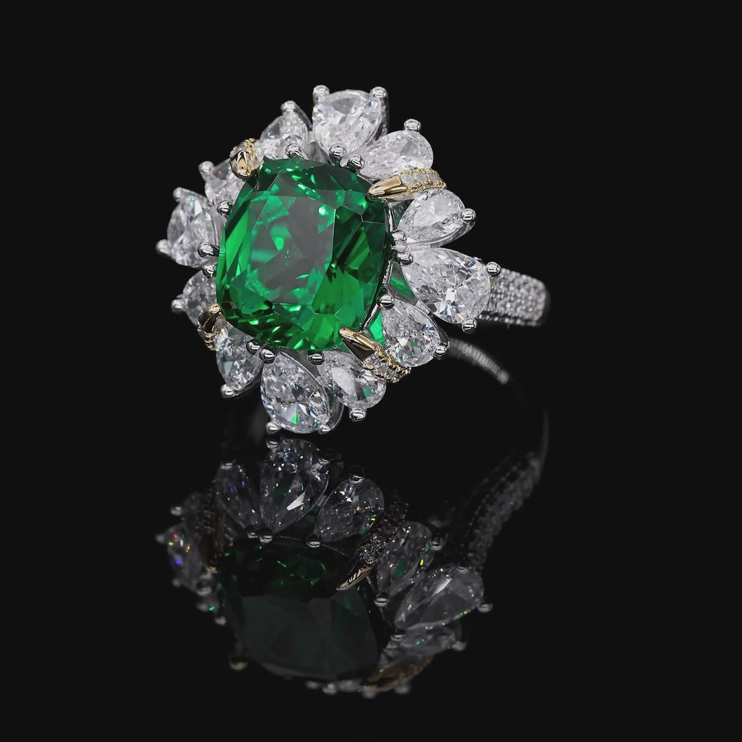 Elevate your style with our contemporary emerald ring, adorned with dazzling diamond crystalline. Perfect for any occasion, this stunning piece adds a touch of glamour to any outfit.