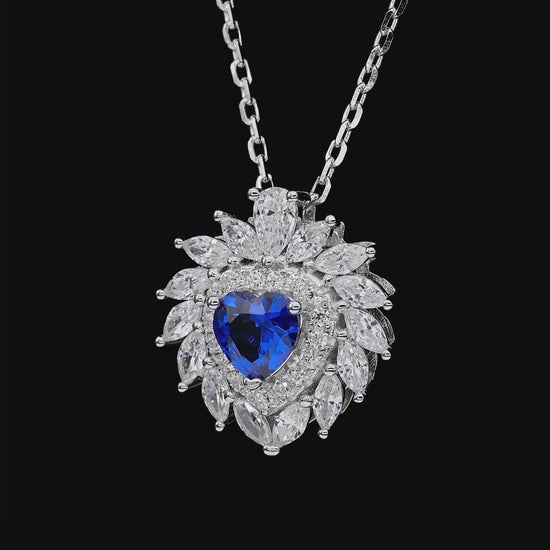 Romantic brilliance meets royal elegance in the Multi Gem Heart Necklace in Sapphire. This breathtaking necklace features a vivid heart-shaped sapphire crystalline at its center, surrounded by a dazzling halo of marquise and round white diamond crystalline gems. The layered, floral-inspired design creates exceptional sparkle and depth, making this necklace a true showstopper. Perfect for evening wear, special occasions, or as a meaningful luxury gift that captures timeless beauty.