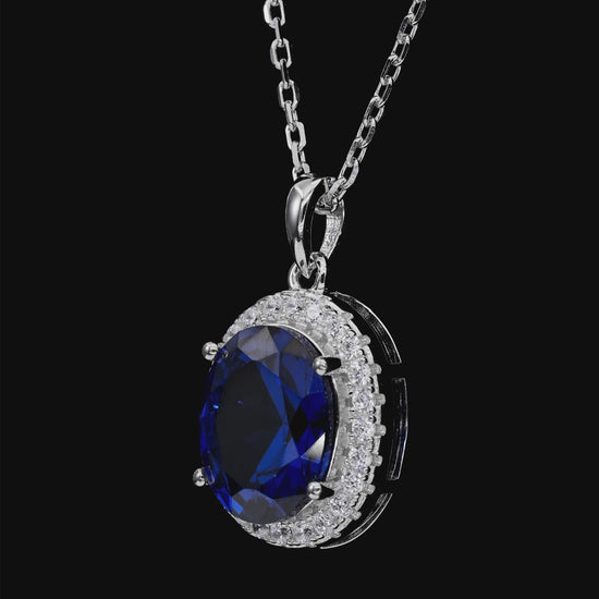 The Oleander Necklace in Blue Sapphire is a timeless expression of elegance and sophistication. Featuring a richly hued oval-cut blue sapphire diamond crystalline, this pendant is surrounded by a radiant halo of white diamond gems that enhance its brilliance and depth. Suspended from a delicate chain, this classic silhouette is designed to elevate both everyday looks and special occasions.
