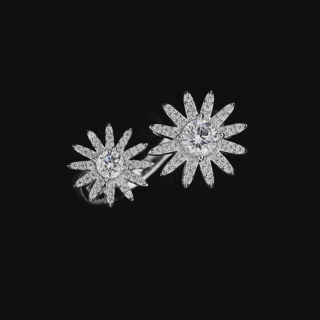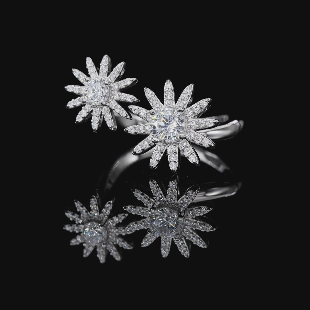 This ring features two radiant starbursts wrapped gracefully around the finger, shimmering with our signature diamond crystalline in a bold, celestial-inspired design. This ring will easily adjust up to one size up or down, depending on finger preference.