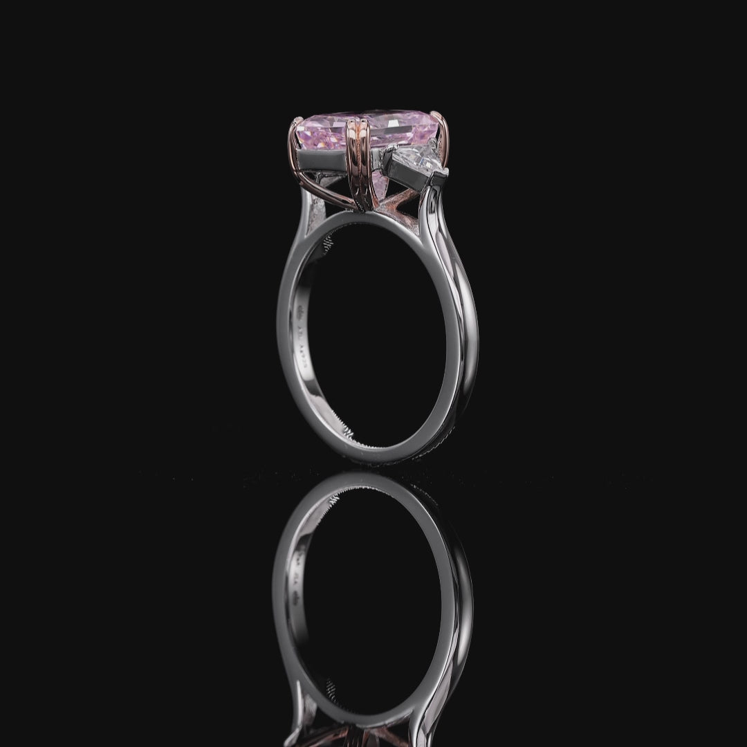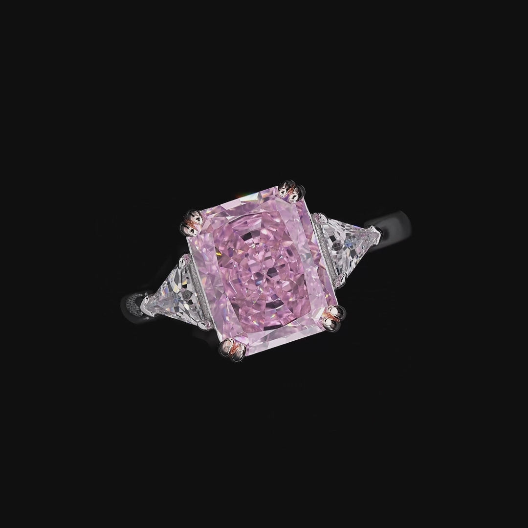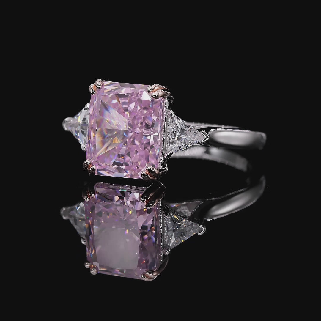 A radiant blush argyle pink crystalline center is flanked by sparkling triangular gems, delivering feminine sophistication and luminous allure. Perfect for every day or any special occasion.