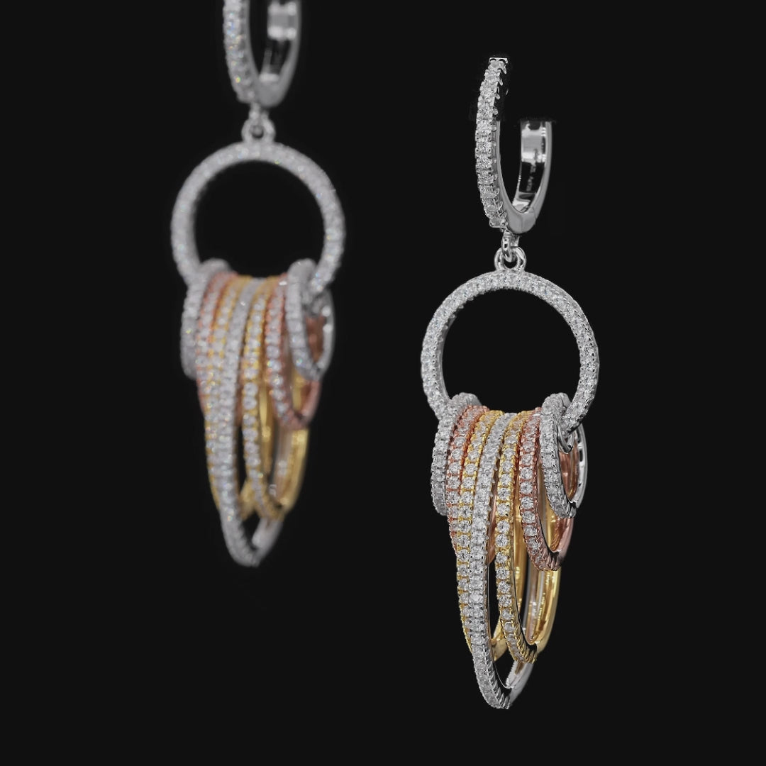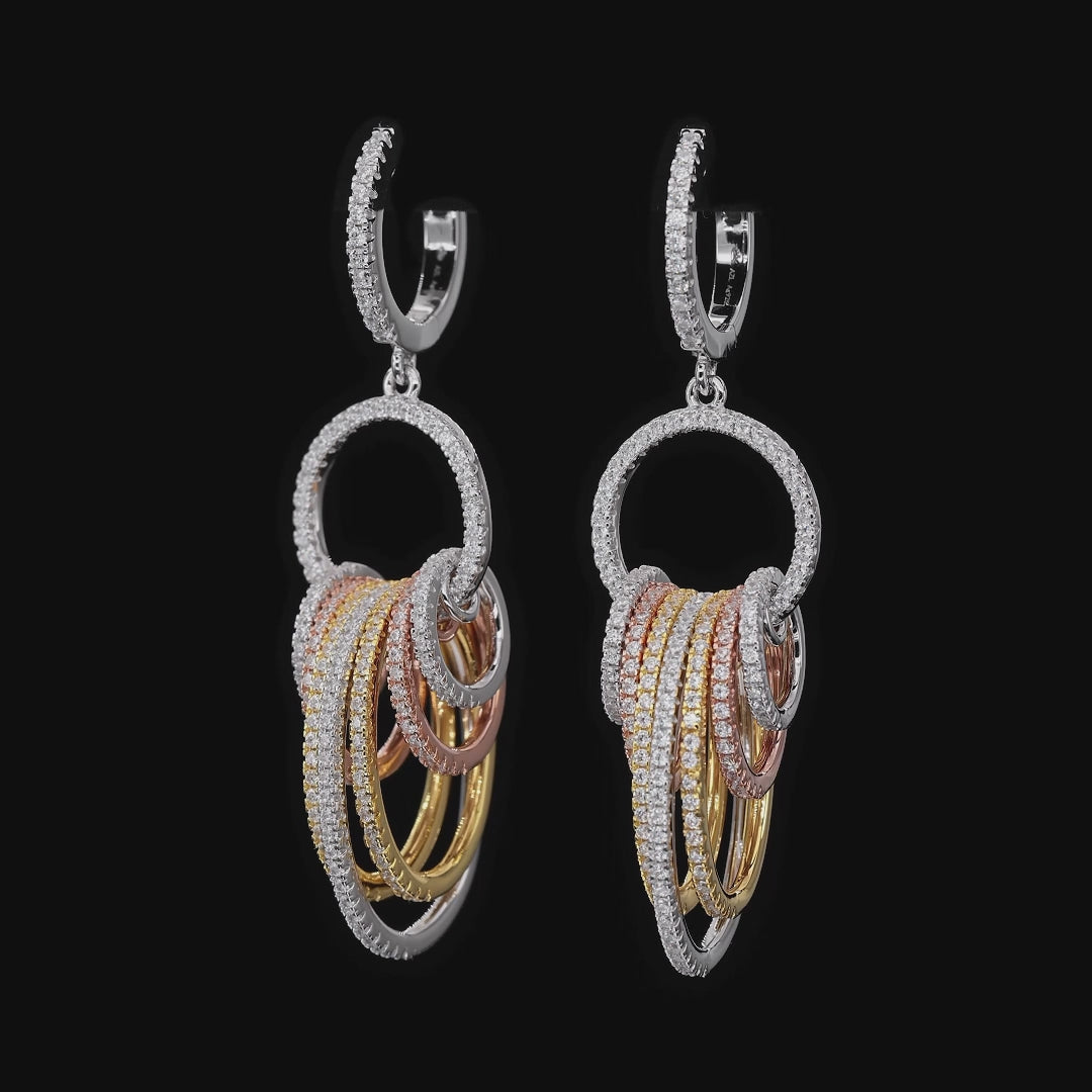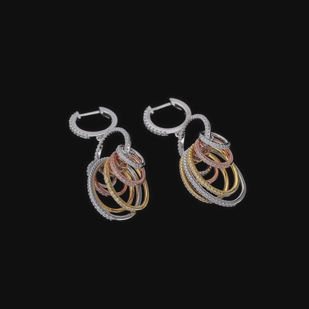 Your choice of gorgeous tri-color or yellow gold earrings adorned with delicate pave-set diamond crystalline, creating a mesmerizing sparkle. The perfect blend of elegance and sophistication, adding a touch of glamour to any ensemble.