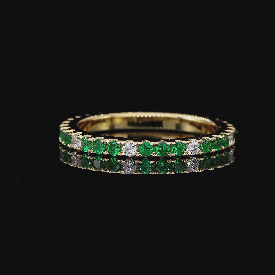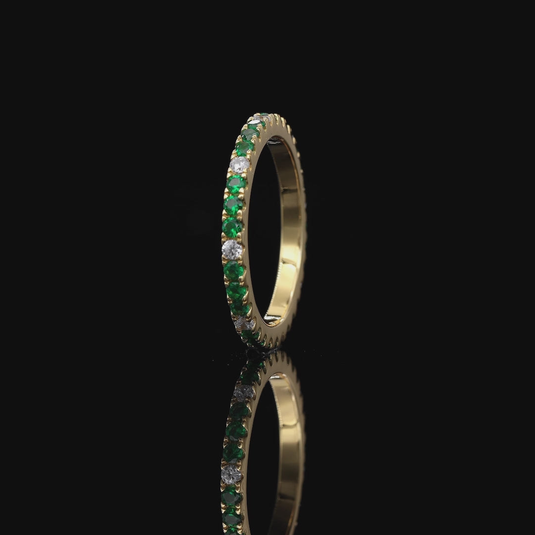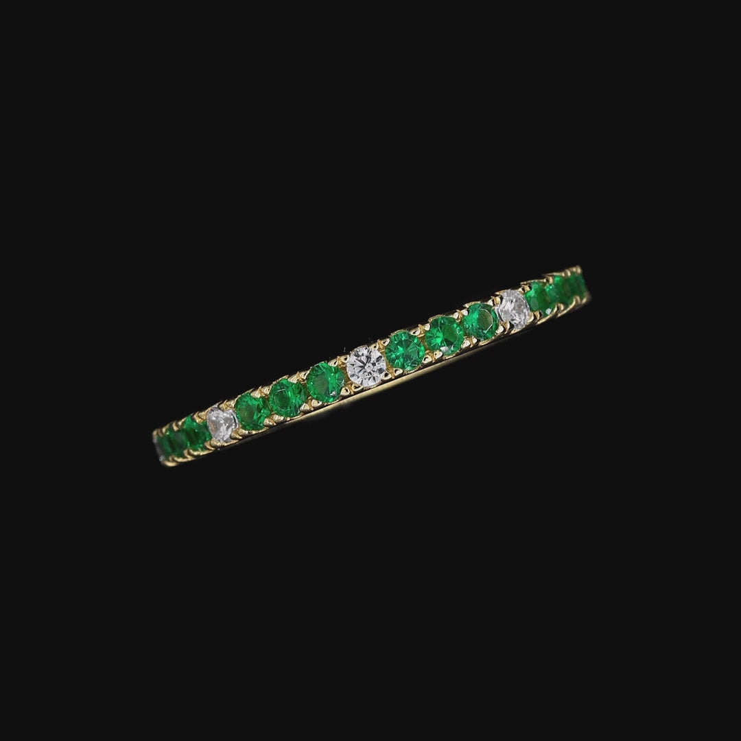 Prong Set Emerald and Diamond Crystalline eternity ring. Perfect for stacking.